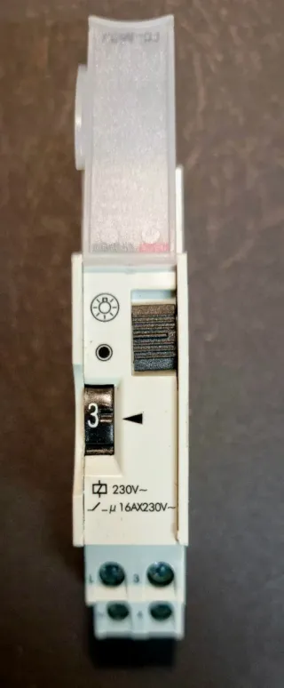 Timer regolabile per guida DIN, ideale per diverse applicazioni. - Tensione di alimentazione: 230V~ - Corrente massima: 16AX230V~