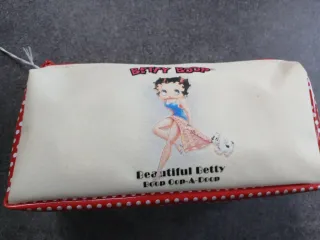 Astuccio vintage con stampa Betty Boop e dettagli a pois rossi. - Design con Betty Boop e un cagnolino. - Zip rossa. Cm. 21 × 8