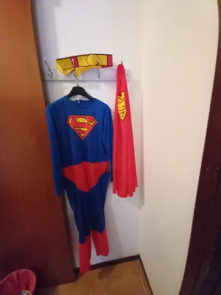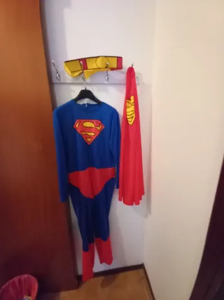 Costume da Superman per il carnevale o feste a tema. - Include tuta blu con simbolo rosso e giallo sul petto. - Cintura gialla con dettagli rossi. - Mantello rosso con simbolo giallo.