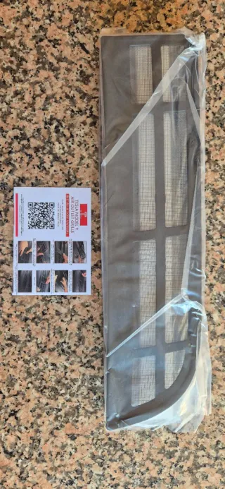 Set di griglie di protezione per le prese d'aria anteriori della Tesla Model Y. Aiutano a prevenire l'ingresso di detriti. - Materiale: Plastica resistente. - Colore: Nero. - Design a nido d'ape.