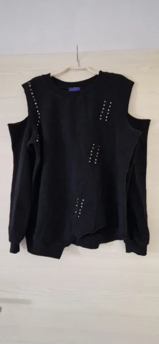 Felpa in cotone con un design moderno e audace. taglia S/M - Spalle scoperte - Dettagli con borchie - Orlo asimmetrico