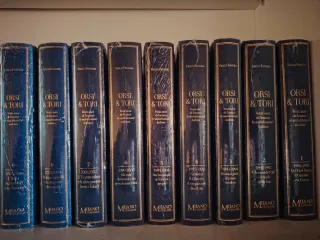 Serie completa di 10 volumi Orsi & Tori di Paolo Panerai. - Coprono il periodo dal 1986 al 2004. - Volumi rilegati in blu con titoli dorati. - Ogni volume tratta anni specifici di finanza italiana. - Titoli dei volumi visibili: 1 (1986-1989), 2 (1990-1992), 3 (1993-1994), 5 (1997-1998), 6 (1999-2000), 7 (2001-2002), 8 (2003-2004). - Marchio Milano Finanza presente sui volumi.