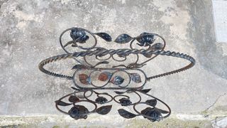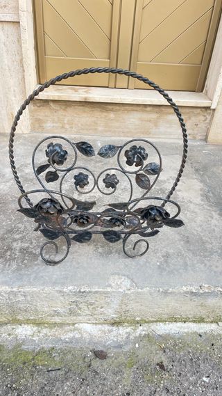 Elegante porta riviste in metallo, perfetto per aggiungere un tocco decorativo alla tua casa. Il design presenta dettagli floreali. - Struttura in metallo lavorato. - Decorazioni floreali con rose. - Manico ad arco per un facile trasporto. ovviamente c’è il ruggine a chi è interessato basta buttare su uno spray ed è fatta.