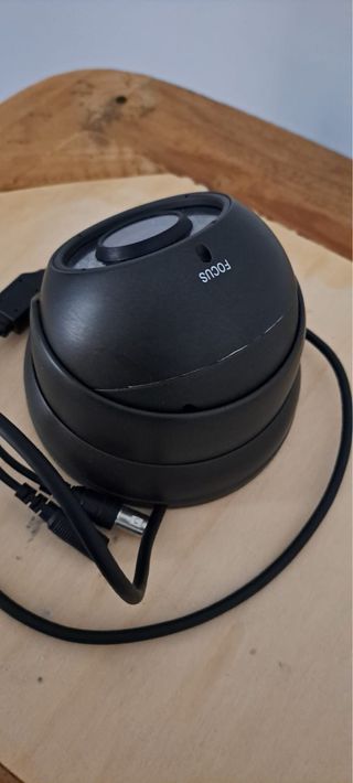Telecamera di sorveglianza di colore nero. - Design sferico. - Cavo di alimentazione incluso. - Connessioni audio/video. potrebbe avere segni di conservazione. la marca si vede in foto.