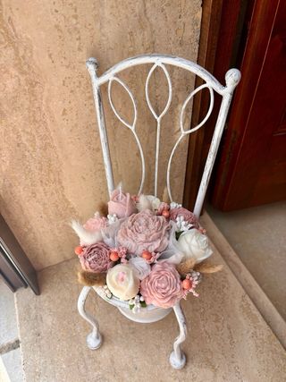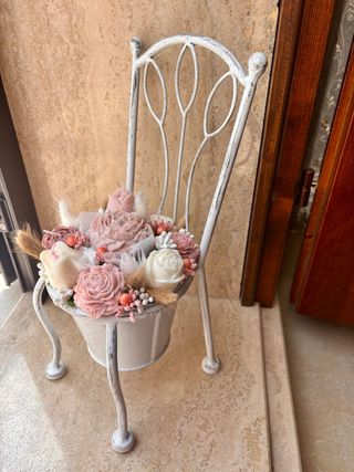 Delicate candele profumate a forma di fiori, perfette per aggiungere un tocco di eleganza. - Composizione floreale in cera. - Tonalità beige e rosa. - Dettagli in tessuto e elementi decorativi.