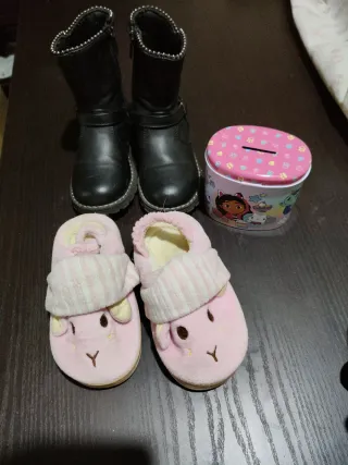 Set 3 pezzi bimba: stivali, pantofole e salvadanai