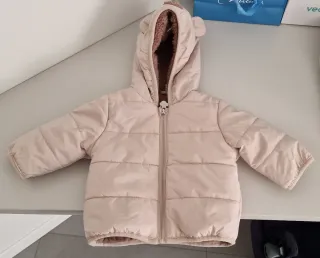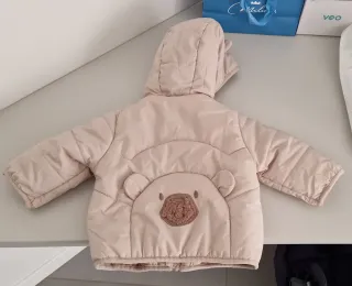 Morbide giacche imbottite per neonato, taglia 3 mesi. Perfetta per tenere al caldo i più piccoli. - Colore beige neutro. - Cappuccio con simpatiche orecchiette. - Fodera interna in peluche effetto teddy. - Chiusura frontale con zip.