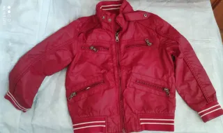 Giubbotto impermeabile per bambino, colore rosso. - Zip frontale. - Tasche con zip. - Polsini e fondo a costine con righe bianche.