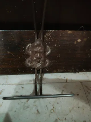 Un elegante cavatappi vintage, realizzato in ferro battuto con dettagli decorativi in stile. - Struttura in ferro battuto nero. - Manici in legno per una presa comoda. - Design classico con riccioli decorativi.