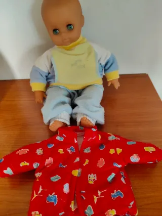 Bambolotto con indumenti. Altezza cm 40 - Bambolotto con occhi azzurri movibili - Giubbino rosso con fantasia colorata.