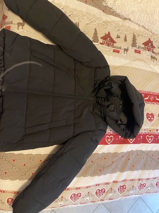 Piumino Calliope di colore nero, perfetto per le giornate più fredde. - Cappuccio integrato,removibile con zip. - Chiusura con zip frontale. - Tasche laterali. - Maniche lunghe. - Caldo -Misure: Lunghezza:58 cm circa Spalle :43 cm Ascelle:50 cm