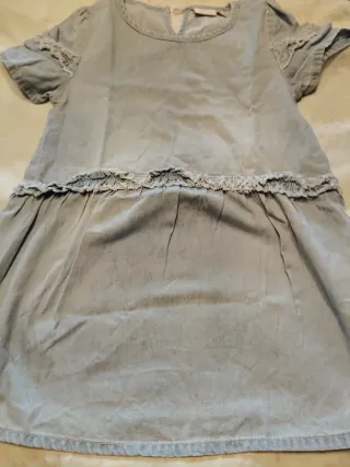 Set composto da due capi di abbigliamento per bambina. - Un capo azzurro con dettagli ricamati e pizzo sangallo 9/12 mesi - Un vestitino con stampa a pois rosa e dettagli in denim, 15 mesi