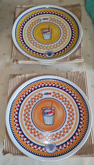 Set di 12 piatti da pizza Estathè, perfetti per aggiungere un tocco di colore alla tua tavola. - Design vivace con decorazioni a tema Estathè. - Realizzati in ceramica resistente.