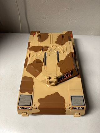Carro armato giocattolo vintage della linea Micro Machines. Un pezzo da collezione per gli appassionati. - Design mimetico desertico. - Dettagli USA e USMC sulla torretta. - Numeri di serie 50 9729 sul retro. specificamente un Battle Tank prodotto da Galoob