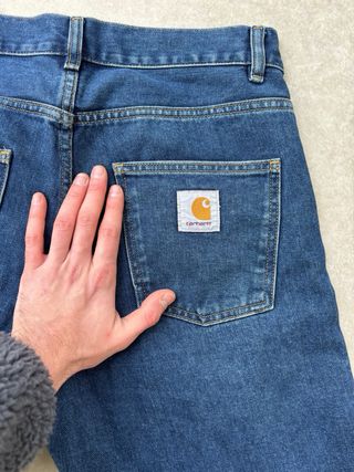 Jeans Carhartt da uomo in denim blu. Un classico intramontabile per un look casual. - Logo Carhartt sul retro. - Tasche posteriori. - Vestibilità comoda.