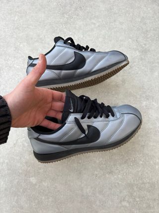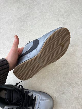 Scarpe Nike Cortez in una bellissima tonalità grigio metallizzato con dettagli neri. Un classico intramontabile. - Tomaia in materiale sintetico trapuntato. - Swoosh Nike nero a contrasto. - Suola in gomma resistente.