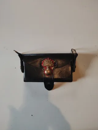 GİBERNA dell'arma dei Carabinieri vintage - Materiale: pelle. - Colore: nero. - Dettaglio decorativo frontale con finiture dorate e rosse.