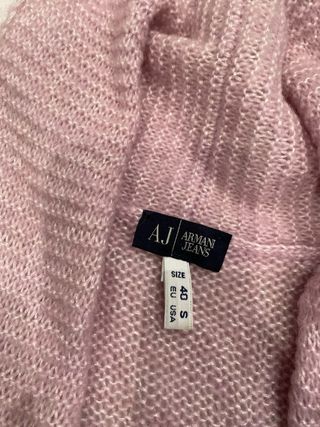 Elegante cardigan Armani da donna, perfetto per aggiungere un tocco di stile al tuo guardaroba. - Morbido filato misto. - Design aperto con scollo a scialle. - Maniche ampie. - Tasche applicate sui fianchi.