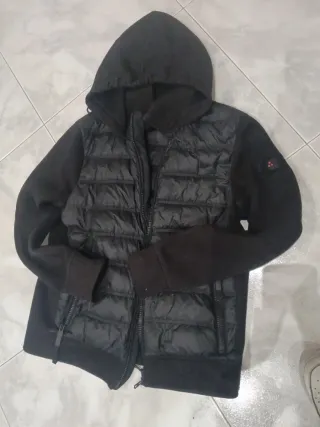 Giubbotto Peuterey in colore nero, con cappuccio integrato e zip frontale. - Tessuto trapuntato sul busto. - Maniche in tessuto morbido. - Polsini elasticizzati. - Zip laterali sulle tasche.