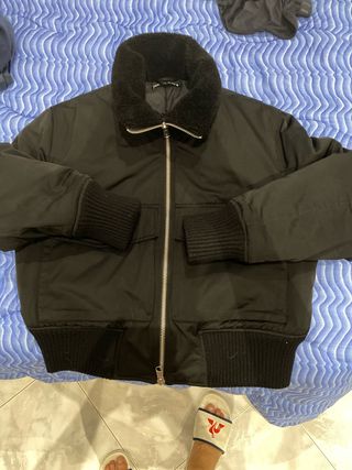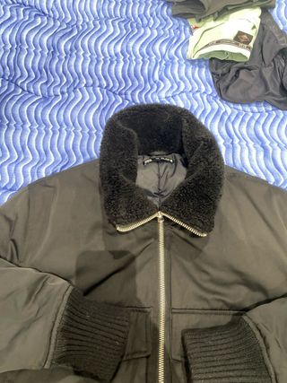 Elegante giubbotto invernale Zara, perfetto per le giornate più fredde. Il design moderno lo rende un capo versatile. - Collo in pelliccia sintetica nera. - Chiusura frontale con zip argentata. - Polsini e fondo a costine. - Tasche frontali con patta.