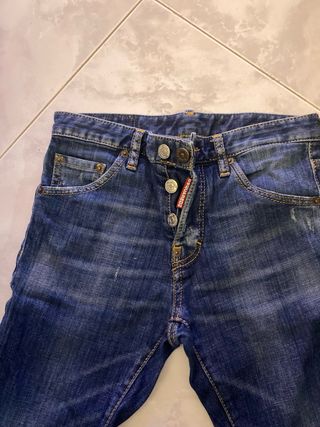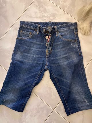 Jeans Dsquared2 da uomo in denim. - Modello corto. - Dettagli strappati. - Chiusura con bottoni.