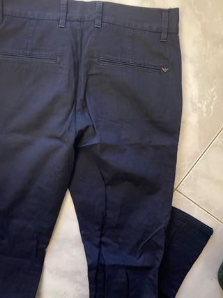 Pantaloni eleganti in tessuto blu. - Logo Armani sul retro.
