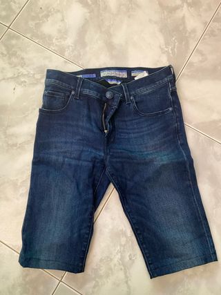 Bermuda di marca Jeckerson. - Patch in tessuto a contrasto sulle ginocchia. - Chiusura con zip e bottone. - Tasche anteriori e posteriori. - Passanti per cintura.