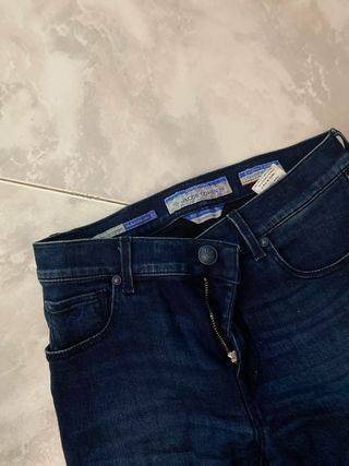 Jeans Versace originali con firma Gianni Versace. - Denim blu scuro. - Firma Gianni Versace dorata. - Dettagli Medusa dorati.