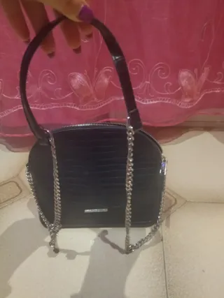 Elegante borsetta da donna con una texture che ricorda la pelle di coccodrillo. - Design a mezzaluna. - Tracolla a catena. - Dettaglio logo sul fronte.