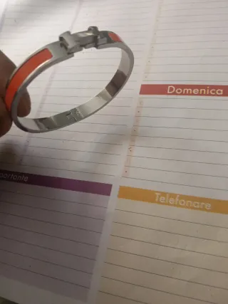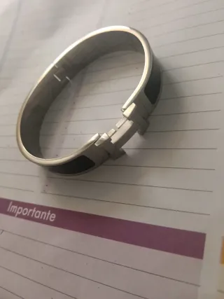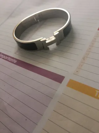 Elegante bracciale Hermes con dettagli in argento e inserti neri. - Design iconico. - Materiali di alta qualità.