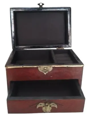 Elegante cofanetto portagioie in stile vintage, perfetto per custodire i tuoi preziosi. Rarità Vintage: Cofanetto Portagioie Antico - Nuovo con Scatola Originale (Segni del Tempo) - Realizzato in legno con finiture dorate. - Dotato di un cassetto estraibile. - Interno foderato per proteggere i gioielli.