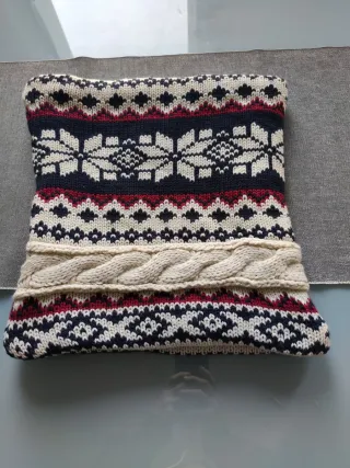 Scaldacollo in lana con fantasia norvegese. - Design a trecce. - Motivo a fiocchi di neve. - Nuova mai usata. - Come da foto.
