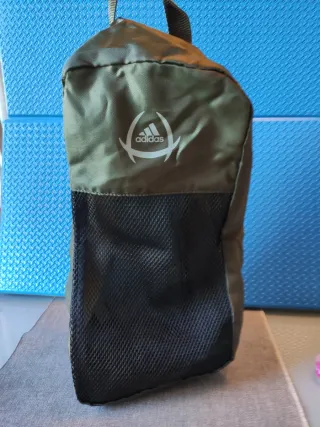Piccolo zainetto Adidas, ideale per riporre le scarpe o altri piccoli oggetti, compreso di tracolla - Tessuto resistente. - Parte esterna anche in rete. - Logo Adidas visibile. - Misure 37x18x15 chiuso