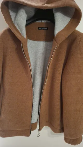 Giubbino con cappuccio della nuova collezione. - Chiusura con zip. - Fodera interna grigia. - Tessuto lavorato. Come nuovo,.