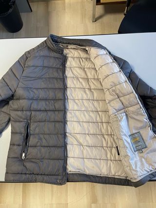Elegante piumino grigio, perfetto per le giornate più fresche. La trapuntatura orizzontale conferisce un look moderno. - Collo alto con chiusura a bottone. - Zip frontale. - Due tasche laterali con zip.