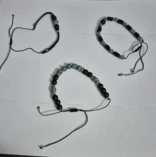 Vendo per inutilizzo braccialetti uomo, mai indossati, colore verde e nero, taglia unica ( sono regolabili ) PREZZO TRATTABILE - Design con perline nere e verde - Chiusura regolabile con cordino.