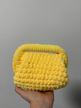 Elegante pochette fatta a mano in ciniglia, perfetta per ogni occasione. - Lavorazione all'uncinetto. - Materiale morbido e piacevole al tatto. - manico da 16cm