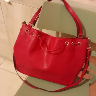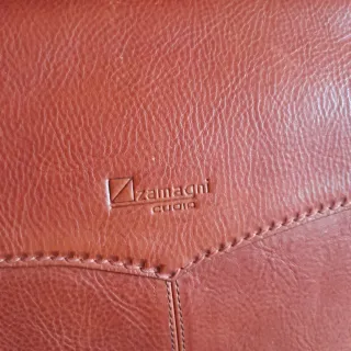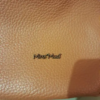 Borsa a mano o a spalla in ecopelle color cuoio. - Dettaglio centrale con cuciture e occhielli metallici. - Manici con inserti decorativi. - Logo del brand inciso sul fronte.