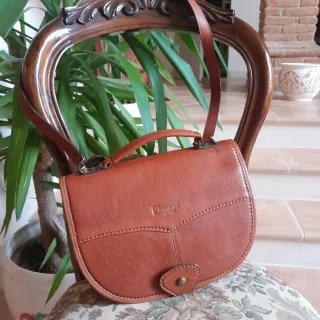 Borsa a tracolla in pelle marrone. - Design classico e versatile. - Chiusura con bottone. - Manico superiore e tracolla regolabile.