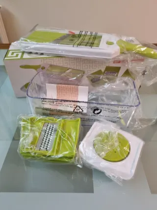 Mandolina Brandani con 8 funzioni diverse, ideale per grattugiare tagliare e affettare verdure e frutta. Puoi regolare facilmente l'apposita rotella lo spessore del taglio 0/4 ml Impugnatura ergonomica soft touch per una presa sicura antiscivolo Dotata di 4 lame intercambiabili in acciaio inox Contenitore in plastica da 1,5L incluso per mantenere gli alimenti Design moderno e funzionale. Materiali resistenti. Mai usata ancora nella sua confezione originale Vieni a visitare il mio armadio se sei interessato a più articoli posso farti risparmiare in un unica spedizione con un set