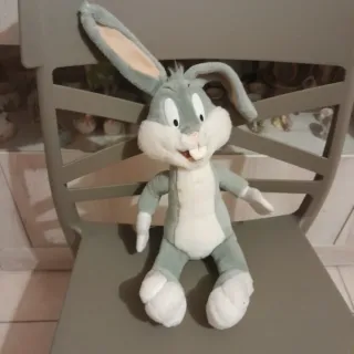 Peluche del famoso Bugs Bunny, personaje de Looney Tunes. Un clásico para coleccionar o regalar. - Peluche de Bugs Bunny. - Personaje de Looney Tunes. - Color gris y blanco.