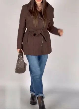 Elegante cappotto foderato. - Chiusura con zip. - Cintura in vita con fiocco per sfiancare la figura. - Collo ampio e avvolgente. - Spalline.
