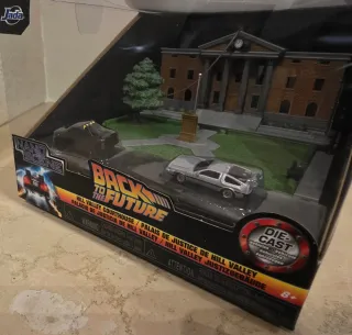 Set da collezione Jada Nano Scene Ritorno al Futuro ambientato a Hill Valley. - Include il tribunale di Hill Valley. - Presenti i veicoli iconici del film. - Dettagli fedeli all'originale.