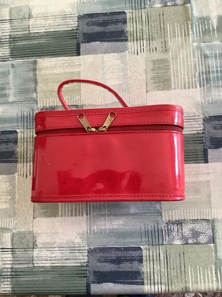 Elegante beauty case vintage ,perfetto per organizzare i tuoi trucchi e prodotti da bagno. - Materiale lucido. - Manico pratico per il trasporto. - Chiusura a zip.