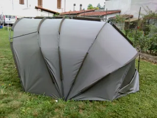 Vendo per inutilizzo 280x305 h160 cm Completa di tutti gli accessori di serie. Sacca, pali, 15 picchetti, stuoia ingresso e kit riparazione Telaio archi alluminio 13 mm altamente resistenti al vento Cella interna sigillata x insetti, acqua e condensa, agganciata alla struttura esterna Veranda protezione ingresso. Apertura con zanzariere frontali e posteriori con secondo pannello oscurante impermeabile Ottime condizioni, no fori. Cerniere e agganci pali perfetti. 1 riparazione zanzariera interna, funzionante, difetto solo estetico Usata 4 volte, sempre con telo di plastica tra tenda e suolo, mai con scarpe all'interno. 18 kg