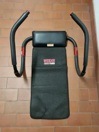 Panca palestra fitness addominali Domyos PA600 Doppia impugnatura imbottita Piedi abbattibili Lunghezza piede regolabile a 3 livelli lato impugnature per variazione inclinazione Dotata di manuale e tutti gli elementi di fissaggio Alcuni segni di usura da normale utilizzo. Pianale imbottito 115x30 cm H da terra 55 cm Ingombro chiusa 160x36x16 cm Ingombro smontata 133x36x22 cm Peso 12 kg