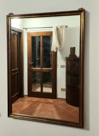 Elegante specchio da parete con una cornice che combina tonalità marroni e dorate 80x110 cm