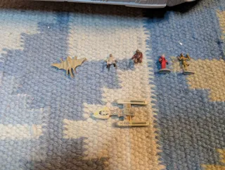 Set di gioco Micro Machines Militari La Baia del Barracuda. - Base strategica con elementi rocciosi e acqua. - Include un piccolo sottomarino e una figura. - Manca un missile e un radar.