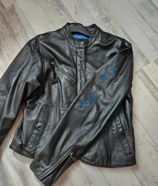 Giacca Harley Davidson Pelle Nera con ricami Blu