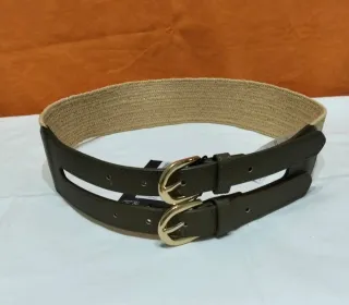 Elegante cintura da donna con una trama intrecciata e dettagli in ecopelle. La chiusura è caratterizzata da una doppia fibbia dorata. - Lunghezza: 83 cm - Larghezza 6 cm - Materiale: Trama intrecciata e ecopelle - Dettagli: Doppia fibbia dorata